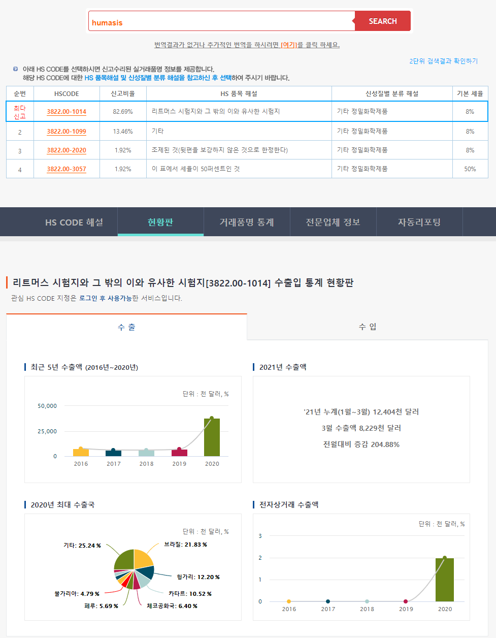 [휴마시스 수출 현황]
