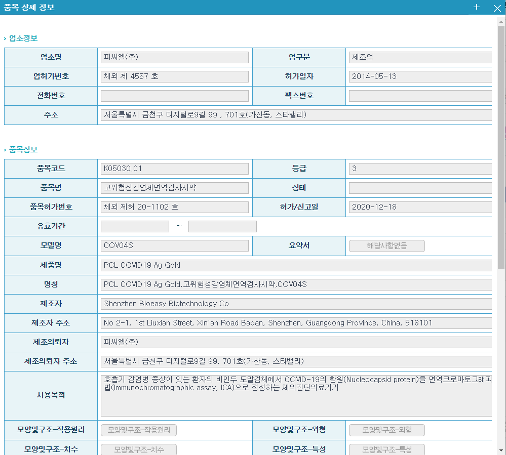 제조자를 보면 'Shenzhen Bioeasy Biotechnology'로 나온다.