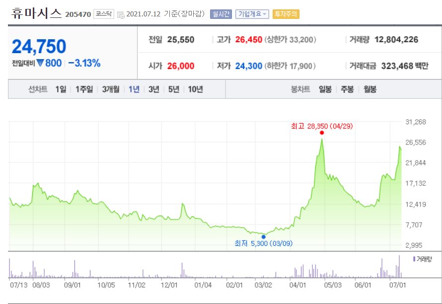 휴마시스 주가에 대해 나름 정확하게 예측했다고 생각한다.