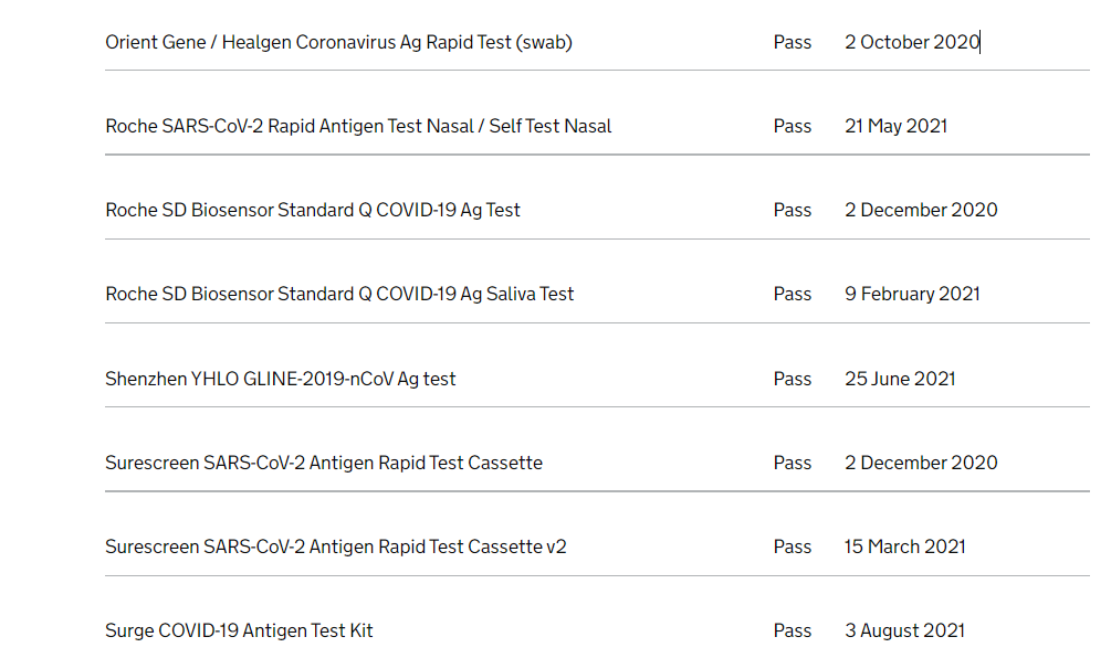 Outcome of the evaluation of rapid diagnostic assays for specific SARS-CoV-2 antigens (lateral flow devices)