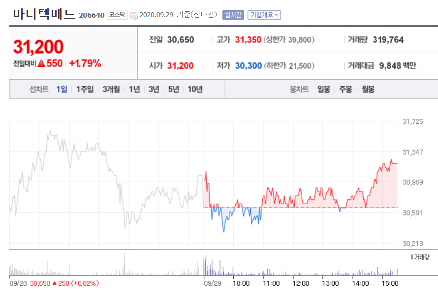 | 바디텍메드 | 312억 | 150억 | 7325억 | 20.47 | 5등 |