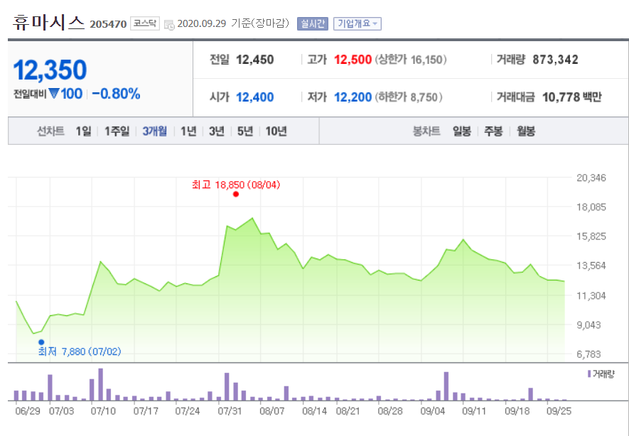 (왜냐하면 실적은 꾸준히 좋았기때문에 코로나로 인한 변화가 다른 기업보다 적어보이고, 코로나 진단키트로 인해 크게 망하지도, 흥하지도 않을 것으로 보이기 때문이다. 그래서 판매 공시가 있다면 크게 변할 수 있을 것.)