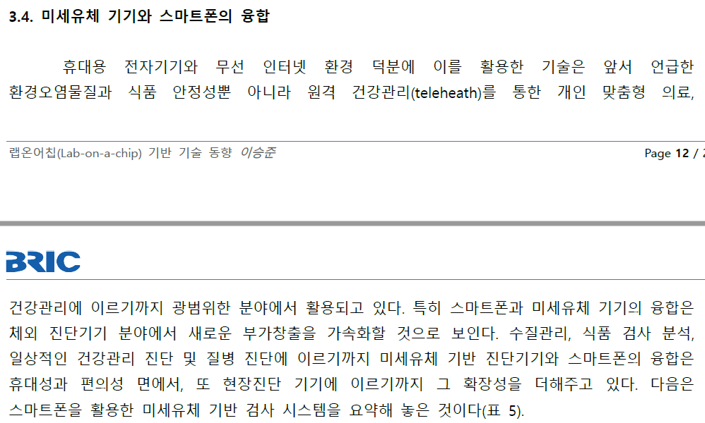 진단 기기 특성상 미세유체를 활용한 랩온어칩 기반 진단키트는 스마트 기기와 연동이 용이하다.