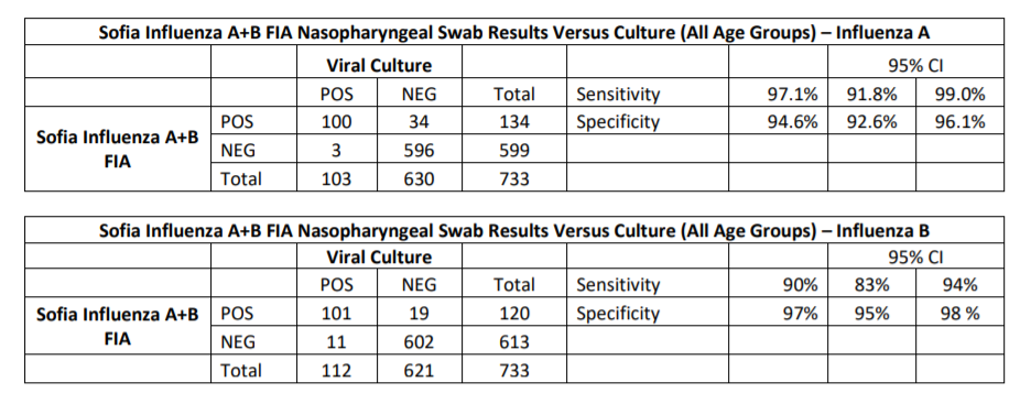 인플루엔자 B형의 경우 민감도 90%, 특이도 97%