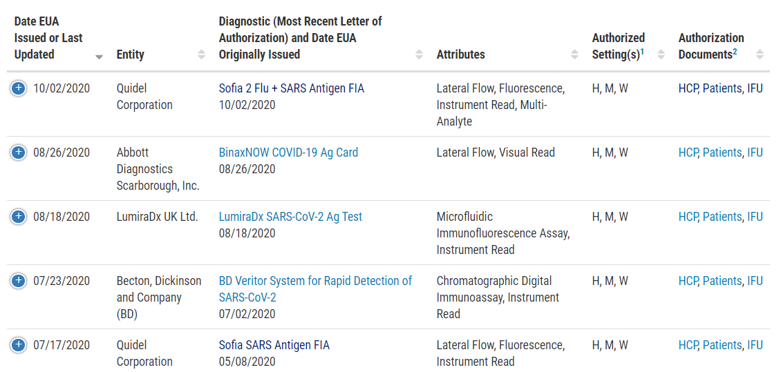 In Vitro Diagnostics EUAs for COVID-19 Tests