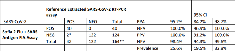 The Sofia 2 Flu + SARS Antigen FIA employs immunofluorescence technology in a sandwich design that is used with Sofia 2. Sofia 2 Flu + SARS Antigen FIA is intended for the simultaneous qualitative detection and differentiation of the nucleocapsid protein antigens from SARS-CoV-2, influenza A and influenza B in direct nasopharyngeal (NP) and nasal (NS) swab specimens from individuals suspected of respiratory viral infection consistent with COVID-19 by their healthcare provider within the first five days of the onset of symptoms. Clinical signs and symptoms of respiratory viral infection due to SARS-CoV-2 and influenza can be similar. Testing is limited to laboratories certified under the Clinical Laboratory Improvement Amendments of 1988 (CLIA), 42 U.S.C. §263a, that meet the requirements to perform moderate, high or waived complexity tests. This test is authorized for use at the Point of Care (POC), i.e., in patient care settings operating under a CLIA Certificate of Waiver, Certificate of Compliance, or Certificate of Accreditation.